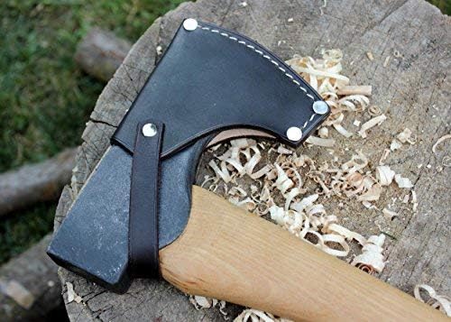 This sheath is designed specifically and exactly for the Council Tool Woodcraft Pack Axe, both the 19" version and the 24" version. It is made out of full-grain vegetable-tanned cowhide and then stained with a brown stain and treated with Neatsfoot oil. The construction of the sheath starts with three pieces of leather: the main body of the sheath, the securing strap and the welt. The main body is folded over a welt that is inserted between the two folded halfs which prevents the blade of the inserted axe from cutting the stitch that is placed to hold the sheath together. The sheath is then glued, hand stitched and steel rivets are placed at the corners to reinforce the body. The axe head blade, when placed in the sheath, is prevented from touching the rivets because of the welt. The retention strap is then secured with a steel rivet and a steel snap is added for easy on/off action. This sheath is built to last, and quality hand crafted in the USA (Spokane, Washington). Finish to the edges of the leather is applied for aesthetics.